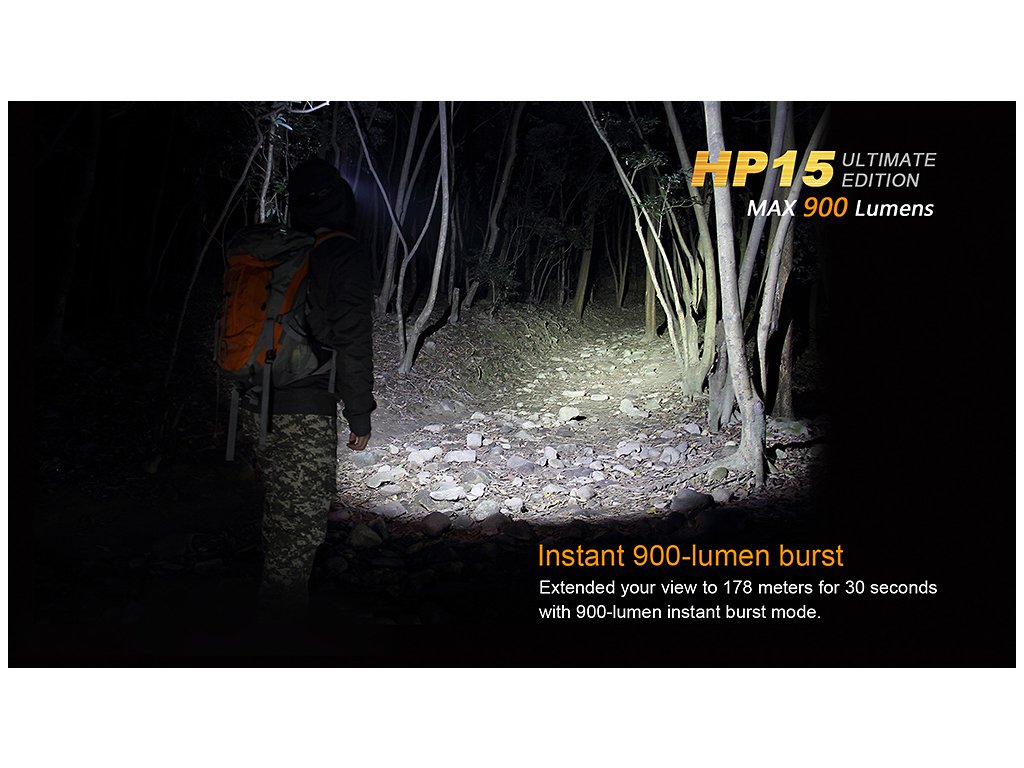 LED čelovka Fenix HP15 Ultimate Edition nabízí bezkonkurenční výkon až 900 lumenů a dosvit až 178 metrů.