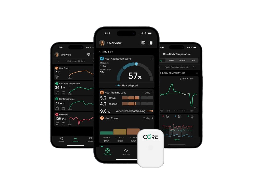 CORE 2 sleduje tělesnou teplotu v reálném čase a pomáhá maximalizovat sportovní výkon. Umožňuje bezpečný a efektivní heat trénink, který podporuje zvýšení hemoglobinu a VO₂ max. V den závodu poskytuje cenná data pro lepší chlazení organismu a optimální rozvržení tempa.