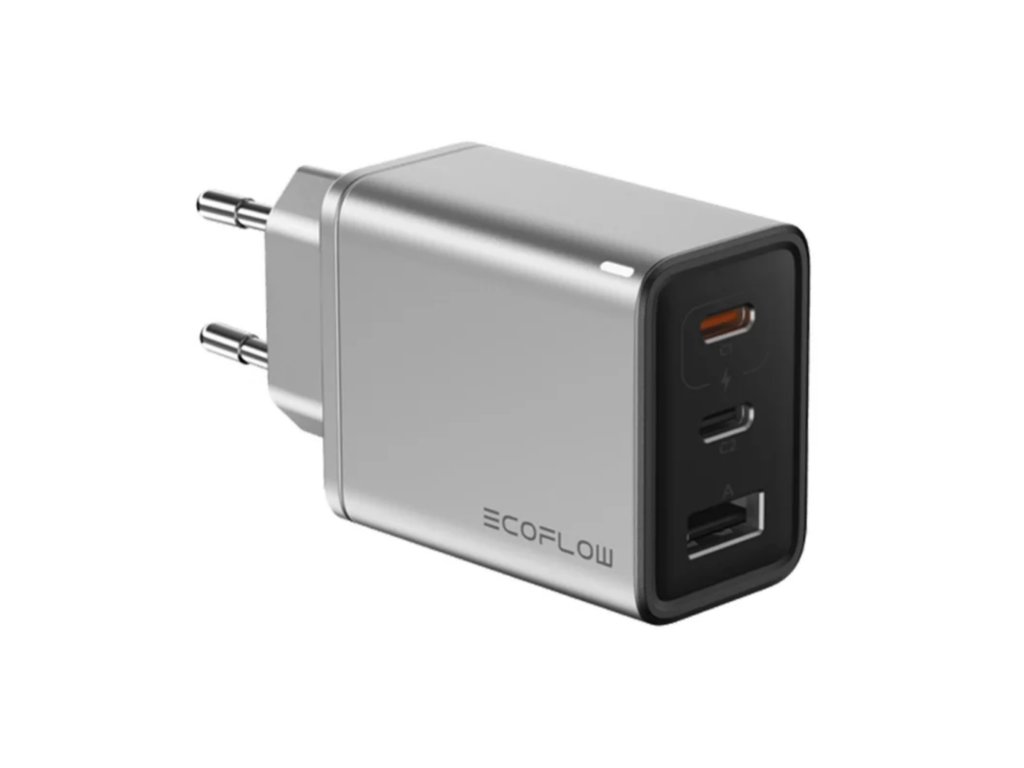 Univerzální nabíječka EcoFlow 65W GaN se dvěma porty USB-C a jedním USB-A díky rychlému 65W nabíjení za krátký čas doplní energií až 3 přístroje současně. Díky vyšší účinnosti GaN polovodičů je nabíječka o 48% menší než klasické křemíkové nabíječky. Nabíječka je energeticky efektivnější a odolnější vůči proudovým nárazům, umožňuje tak rychlé dobíjení chytrých telefonů, tabletů nebo notebooků s USB-C napájením.