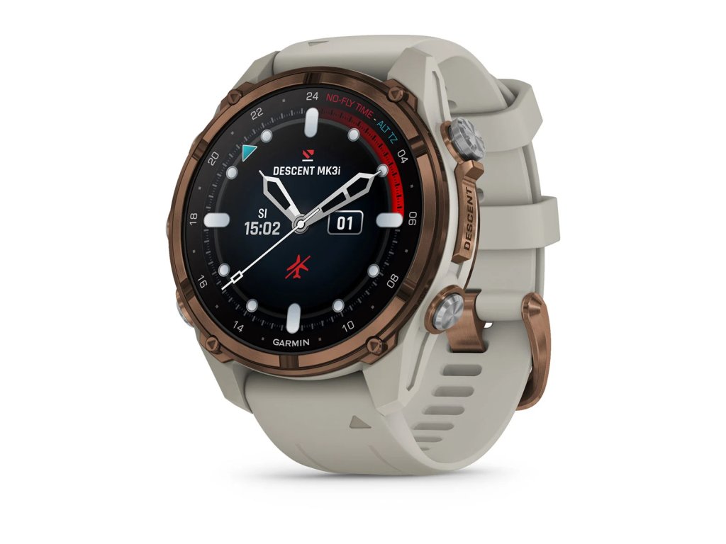 - Hodinky Garmin Descent Mk3i – 43 mm, Bronze Titanium PVD, French Grey silikonový řemínek