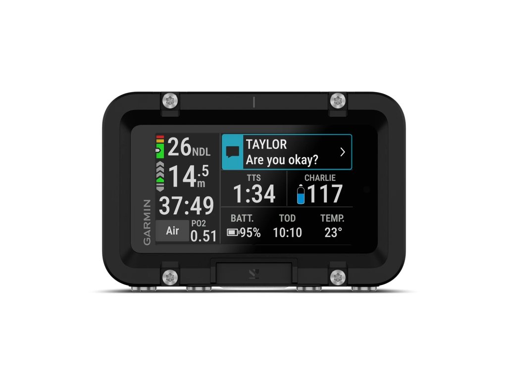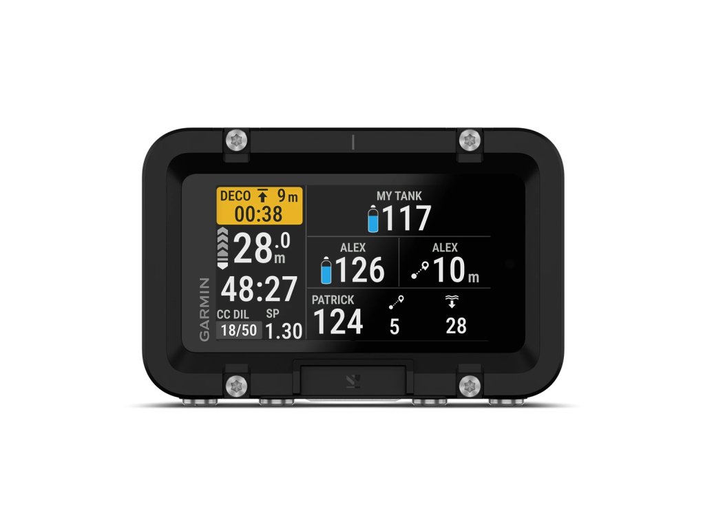Posílejte si přednastavené zprávy s ostatními potápěči až do vzdálenosti 30 metrů a sledujte tlak v lahvích, hloubku a vzdálenost až 8 potápěčů v dosahu 10 metrů.