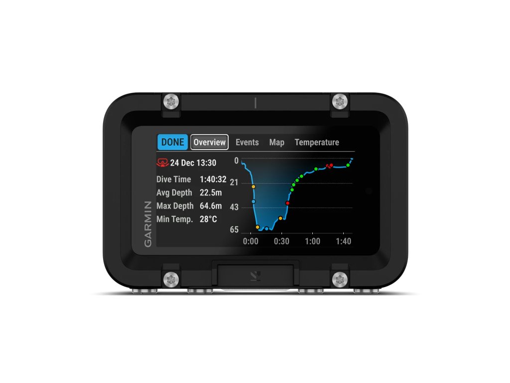 Velký barevný displej poskytuje vyšší viditelnost dat a umožňuje snáze přečíst důležité informace, například profil plánovaného výstupu nebo hloubkové grafy. Dotyková obrazovka usnadní nastavení, když jste nad hladinou.
