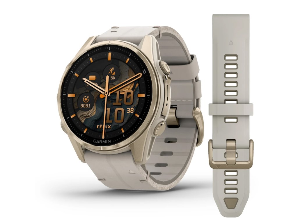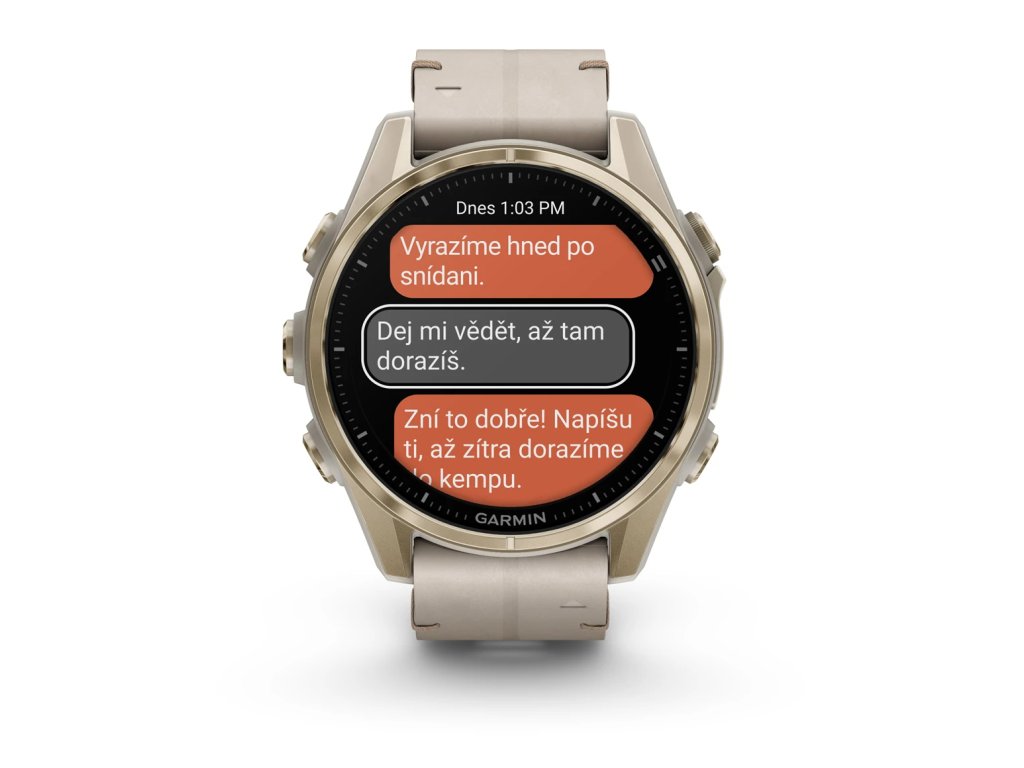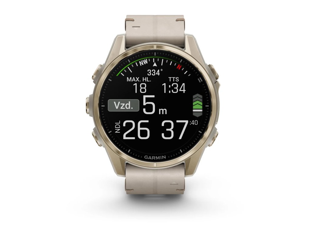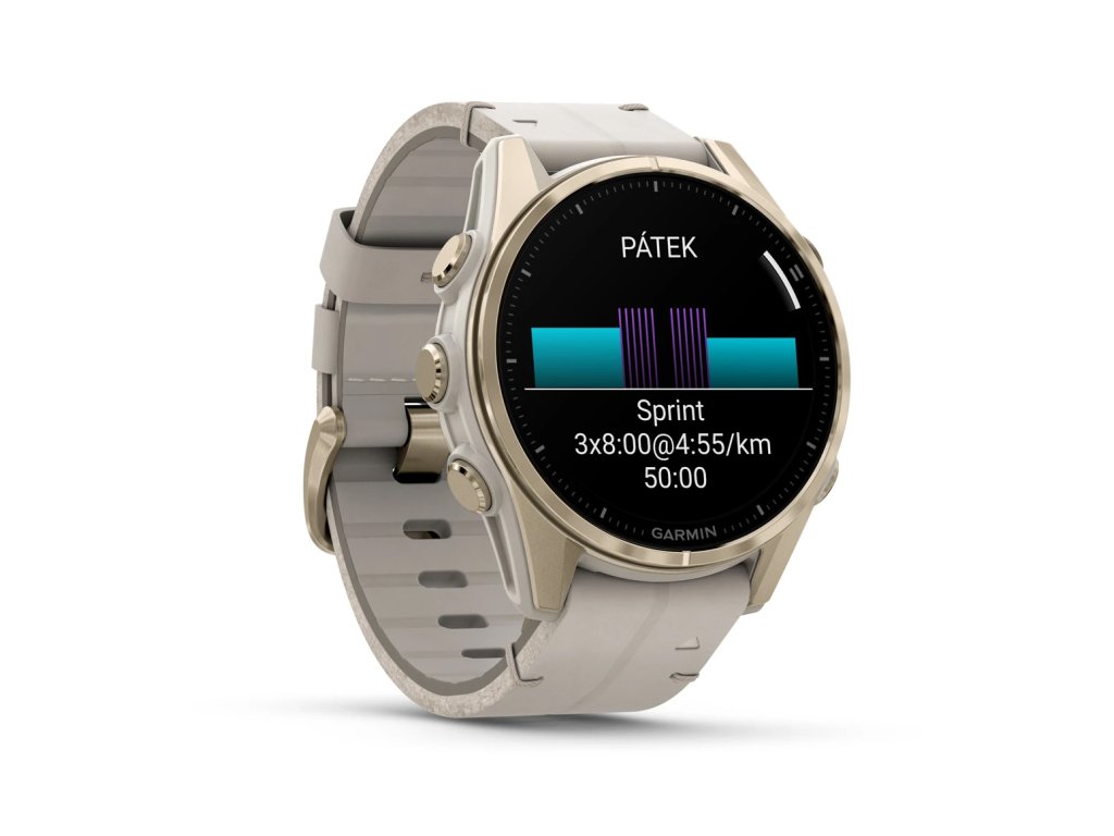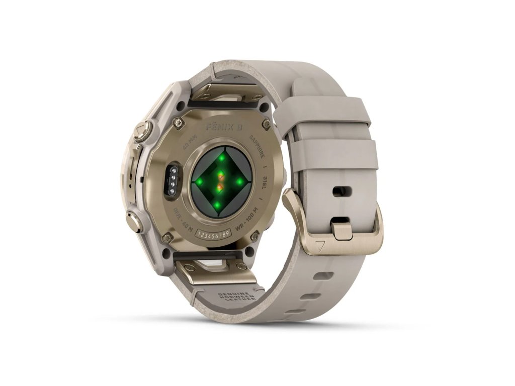 Garmin Fenix 8 Amoled Sapphire 43 mm Sapphire, Soft Gold / Limestone s koženým řemínkem