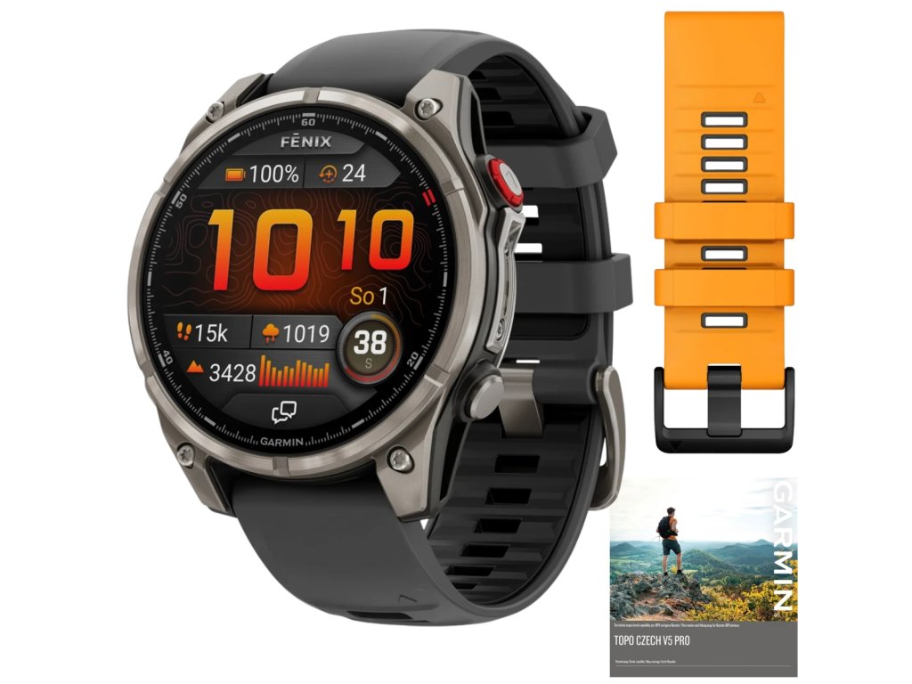 Garmin Fenix 8 Pro Amoled Sapphire Titanium 47 mm Graphite Black / Spark Orange Set + dárek