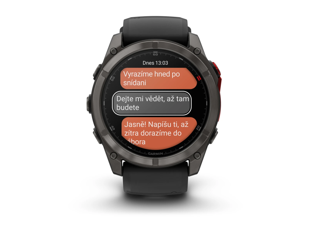 Díky satelitnímu nebo LTE připojení můžete odesílat zprávy ostatním uživatelům aplikace Garmin Messenger přímo z hodinek. Aplikace se automaticky synchronizuje s kontakty, jakmile hodinky spárujete s telefonem.