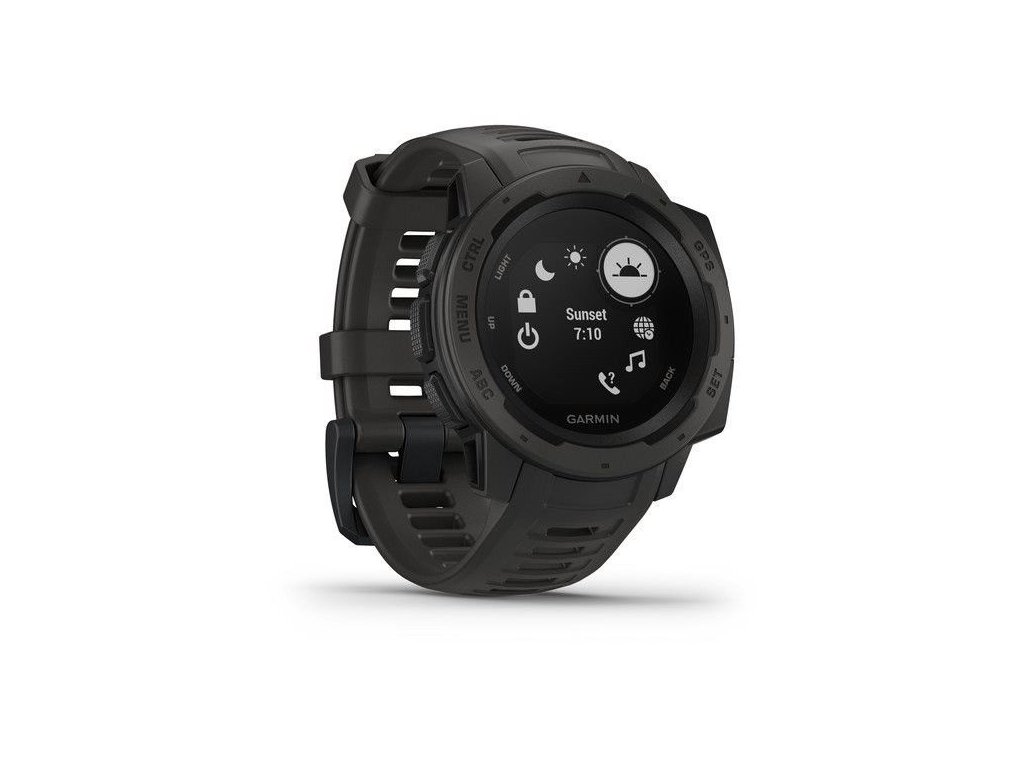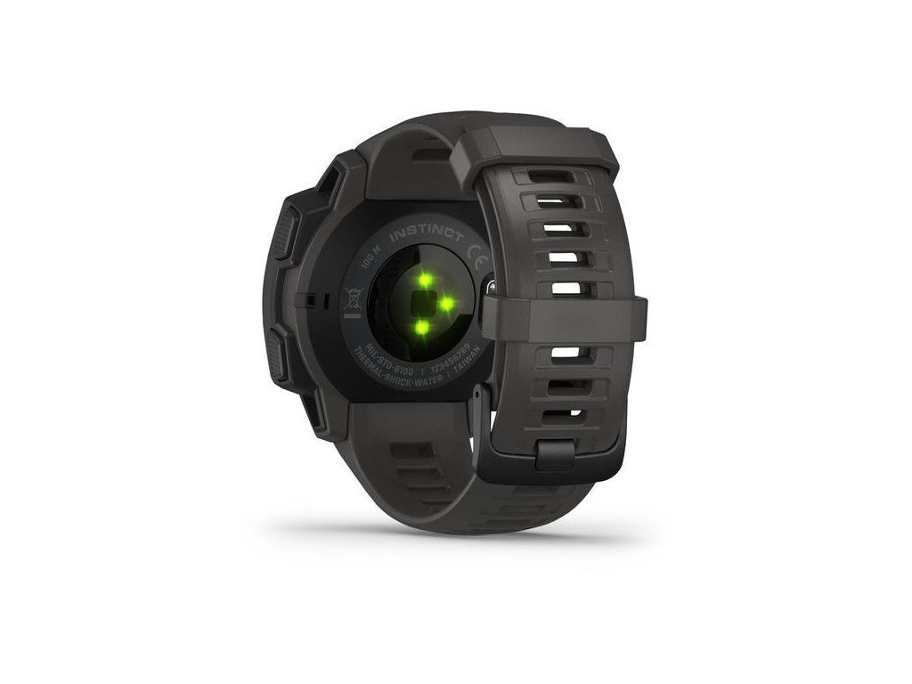 Garmin Instinct jsou robustní chytré GPS hodinky pro outdoorové nadšence i sportovce. Nabízí kontrastní černobílý displej s dostatečně vysokým rozlišením, dobře čitelný i na přímém slunci, krytý sklíčkem z chemicky tvrzeného skla odolného proti poškrábání.