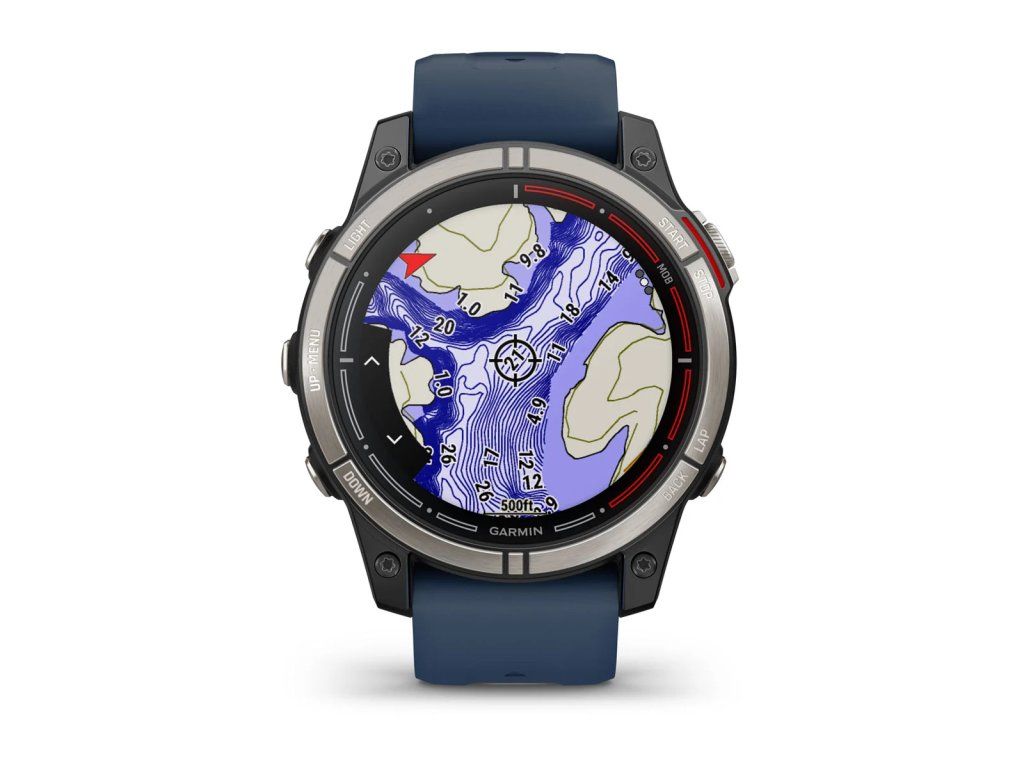 Hodinky quatix 7 Pro dokážou zobrazit podrobné námořní mapy založené na datech firmy Navionics® (prodávají se samostatně).