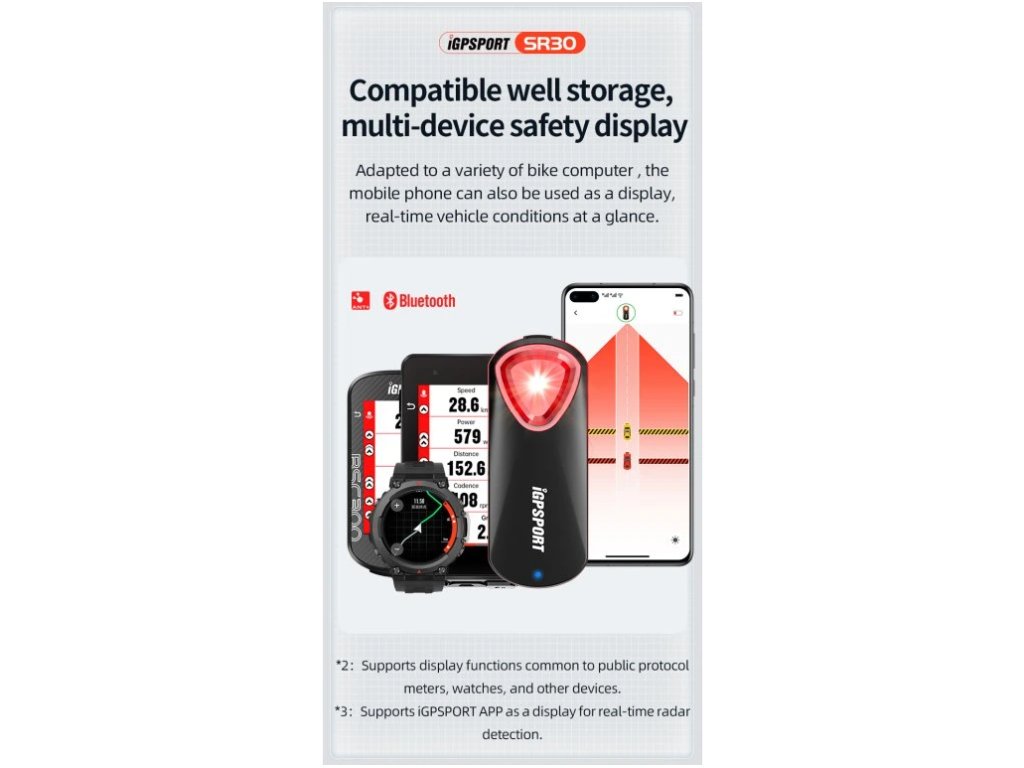 Díky kombinaci výkonného zadního světla a radaru je iGPSport SR30 ideálním bezpečnostním doplňkem pro cyklisty, kteří chtějí mít přehled o dění za sebou a být viditelní za všech podmínek.