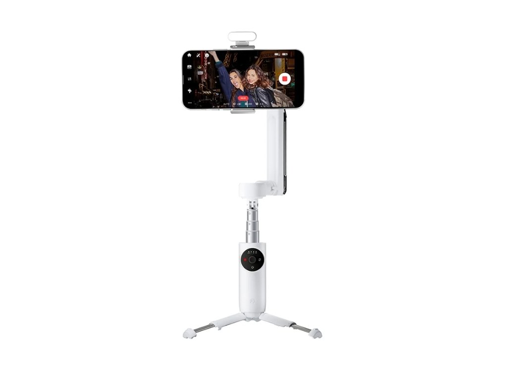 Na cestách oceníte kompaktní rozměry skládací konstrukce stabilizátoru. Navíc je vybaven vestavěnou selfie tyčí, prodlouženou rukojeti a stativem. Natáčejte působivá 360 stupňová videa, kromě toho je také připraven na instalaci pomocného světla či mikrofonu.