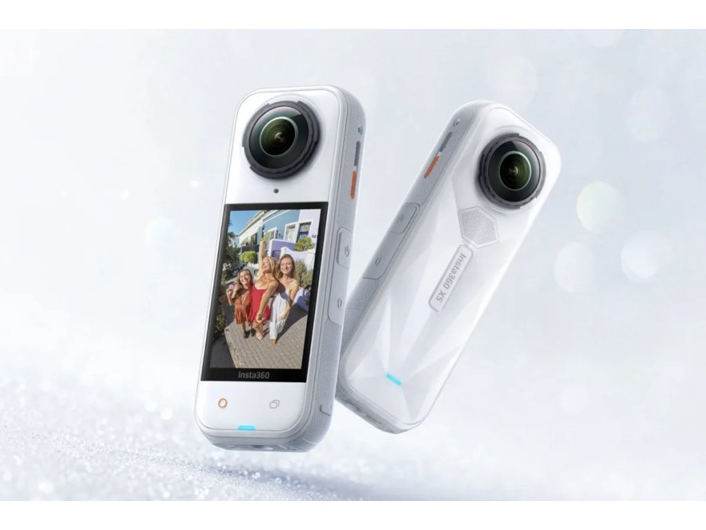 Akční 360° kamera Insta360 X5 se snímačem 1/1.28" a triple AI čipem. Rozlišení 360° videa až 8K/30fps, při 4K až 120 fps. Foto rozlišení 72 Mpx. Vodotěsnost do 15 m, 6osá stabilizace FlowState, bitrate 180 Mbps, vylepšený noční režim. Baterie 2400 mAh s výdrží až 185 min. Nabízí InstaFrame mód pro okamžité sdílení, vylepšený zvuk s novou vestavěnou ochranou proti větru. Má odolné a vyměnitelné čočky. Rozměr kamery 46 x 124,5 x 38,2 mm. Součástí balení je přenosné pouzdro, USB C/C kabel, hadřík na čištění čoček, nálepky na čištění.