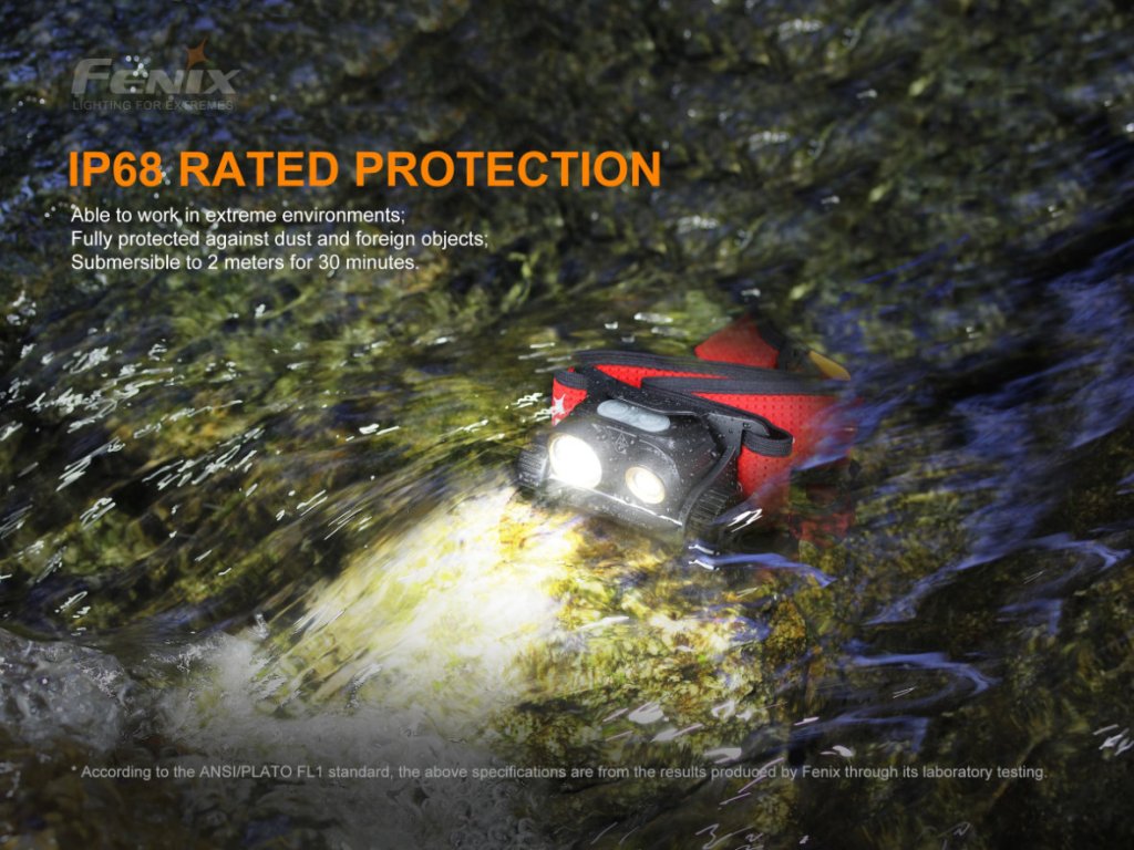 Všechny parametry čelovky (světelný tok, doba provozu na baterie, vodotěsnost, dosvit a nárazuvzdornost) jsou změřeny v souladu s normou ANSI/NEMA FL 1-2009.