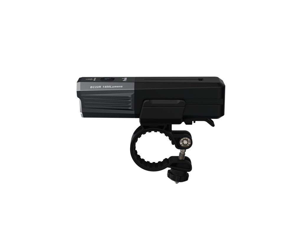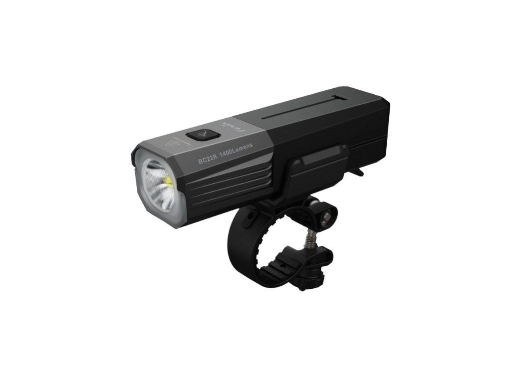 Výkonná nabíjecí cyklosvítilna Fenix BC22R přináší světelný tok až 1400 lumenů (ANSI) s dosvitem až 156 metrů. K napájení slouží vyměnitelný Li-ion akumulátor typu 18650 o kapacitě 3400 mAh, který je součástí balení a nabíjí se přes USB-C konektor přímo ve svítilně. Světelným zdrojem je moderní dioda Luminus SST-40. Svítilna používá speciálně tvarovanou optiku, která směřuje světlo pouze dopředu a do stran, nikoliv nahoru. Světelný kužel je tedy shora částečně uříznutý a neoslňuje ostatní řidiče a chodce. Zároveň použitá optika vytváří velmi široký světelný kužel, který plynule osvětluje celý prostor před jízdním kolem, takže svítí i v místech, které běžné cyklistické svítilny nepokryjí. Světlo na kolo Fenix BC22R je proto vhodné nejen pro použití na silnicích a cyklostezkách, ale perfektně zvládne i osvětlení na trailech. Design držáku umožňuje rychlou montáž i demontáž světla na řídítka bez použití nářadí, svítilnu lze navíc z držáku rychle vyjmout a použít ji jako vysoce výkonné ruční světlo. Držák je kompatibilní s řídítky s průměrem od 22 až do 32 milimetrů.