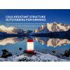 - Mrazuodolné provedení, akumulátor je dobře izolován proti nízkým teplotám, takže lze lucernu používat i při teplotách hluboko pod nulou.