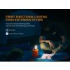 Boční svícení a spodní svícení jsou velmi praktické funkce výrazně šetřící energii. Hodí se zvláště v situacích, kdy není kruhové všesměrové osvětlení potřeba. Lucerna je také vybavena funkcí prodloužení výdrže. Při delším použití v režimech turbo (400 lumenů) a vysoký (150 lumenů) lucerna postupně snižuje výkon v malých krocích pro dosažení delší doby svícení.