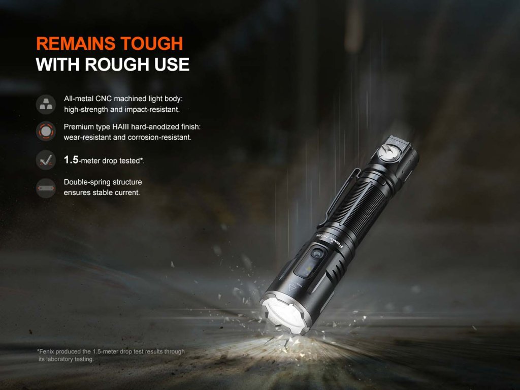 - Vyrobeno z leteckého tvrzeného hliníku 6061-T6, svítilna je nárazuvzdorná pádům z výšky 1 metru.