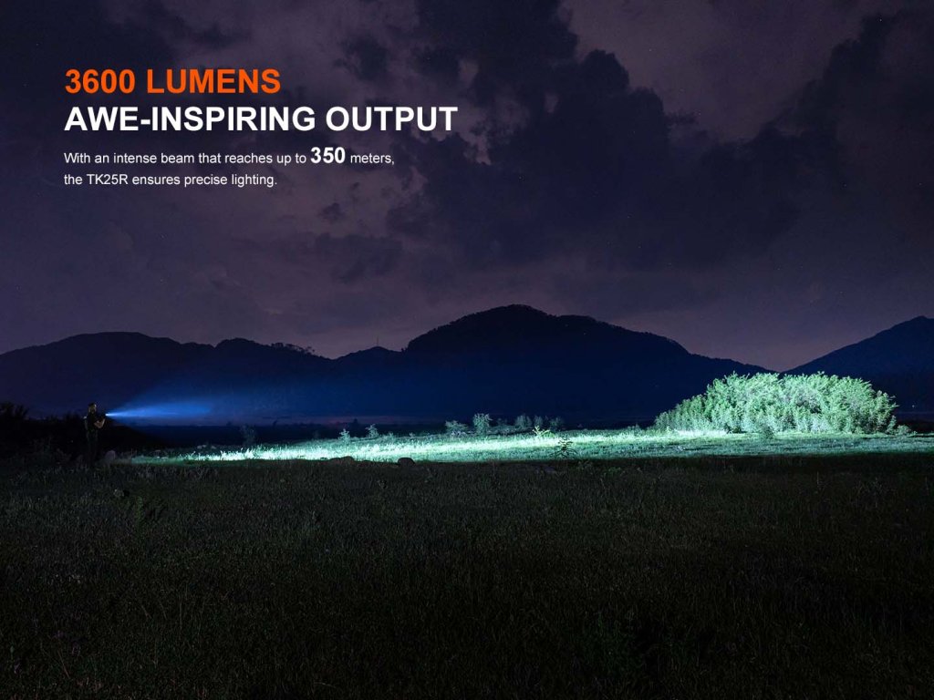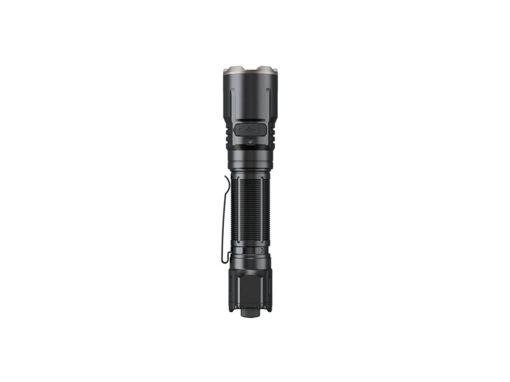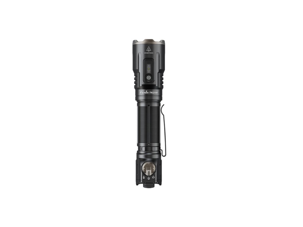Fenix TK25R je špičková taktická svítilna, která nabízí vysoký výkon a univerzální využití díky kombinaci hlavního a bočního reflektoru. Hlavní reflektor s prémiovou LED Cree XHP50.3 poskytuje světelný tok až 3600 lumenů s dosvitem 350 metrů. Unikátní vlastností tohoto modelu je integrované boční světlo, které disponuje difuzním bílým, červeným a ultrafialovým světlem (365 nm) o výkonu až 700 mW, které umožní například rychlou kontrolu pravosti dokladů a bankovek, vytvrzování lepidel či kontrolu úniku kapalin. Dále je boční světlo vybaveno funkcí červeno-modrého blikání, což ocení zejména ozbrojené složky. Napájení zajišťuje Li-ion akumulátor typu 21700 (Fenix ARB-L21-5000 V2.0) s kapacitou 5000 mAh, který se nabíjí přes moderní USB-C konektor přímo na těle svítilny. Tělo je vyrobeno z odolné hliníkové slitiny A6061-T6 s tvrdou anodizací a je plně vodotěsné a prachotěsné dle standardu IP68.