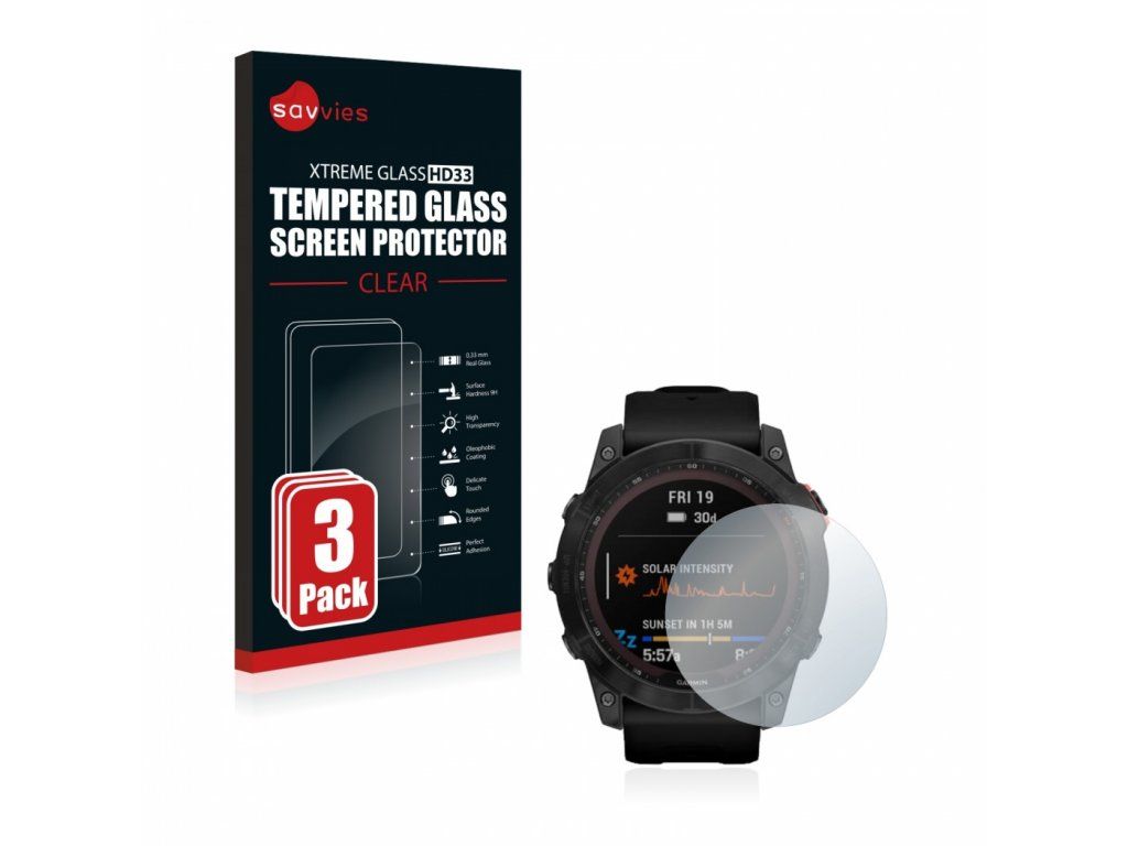 Savvies® Xtreme Glass HD33 je tvrzené sklo pro ochranu displeje hodinek s povrchovou tvrdostí 9H a oleofobním povrchem. Poskytuje maximální ochranu proti poškrábání a oděrkám.
