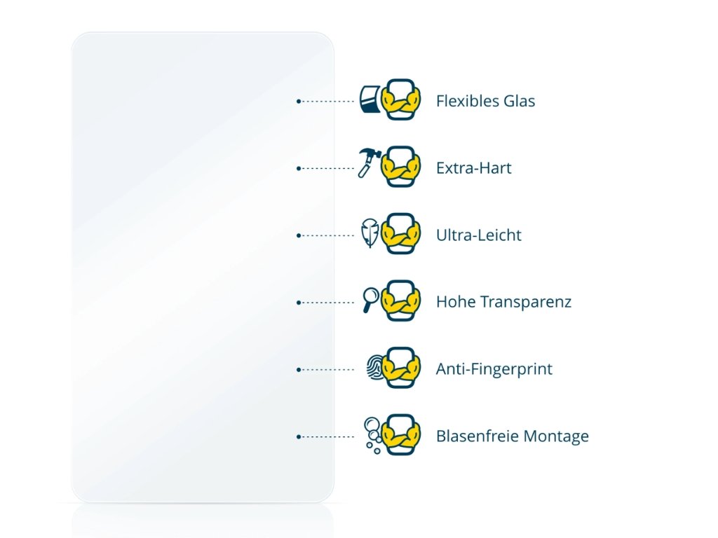 BROTECT® AirGlass® je 2x tenčí a lehčí než většina jiných skel. Proto je také pružnější, přitom ale stále nabízí mimořádně vysokou odolnost proti poškrábání.