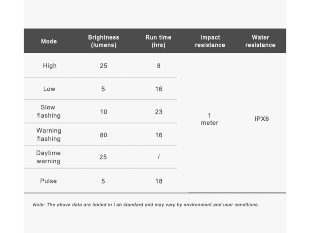 - Poutavá blikající světla s max. 80 LED lumeny poskytující skvělou viditelnost pro jízdu ve dne i v noci.