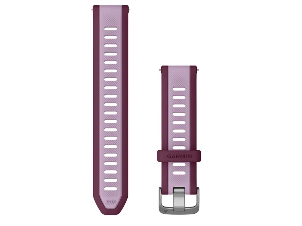 Silikonový řemínek Garmin v barvě Berry/Lilac se systémem uchycení Quick Release a šířkou 20 mm. Je vhodný pro všechny sportovní i lifestylové modely s tímto standardem a šířkou řemínku.