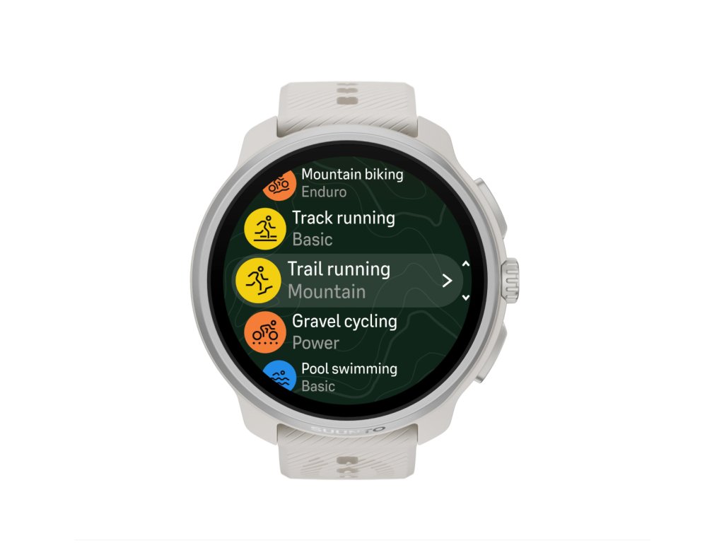 Suunto Race 2 v elegantní světlé variantě jsou GPS hodinky kombinující styl a bohatou sportovně outdoorovou výbavu. Zaujme také 1,5" Amoled displej s jasnými barvami.