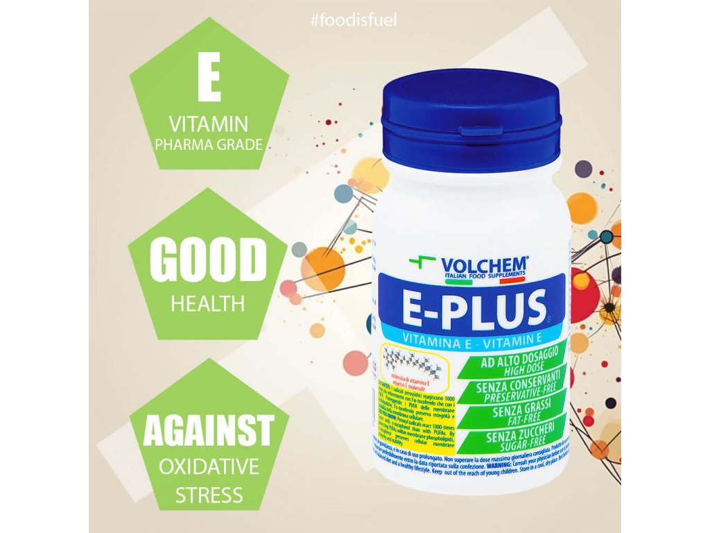 VOLCHEM E-Plus je potravinový doplněk s vysokým obsahem vitaminu E. Vitamín E přispívá k ochraně buněk před oxidačním stresem.
