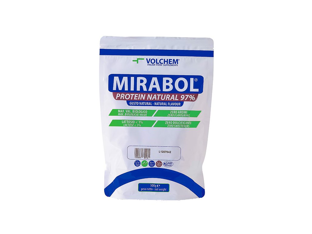 VOLCHEM Mirabol Protein 97 obsahuje kombinaci kaseinu, syrovátkové a vaječné bílkoviny. Obsah bílkovin v sušině je u tohoto produktu 97 % a v celkovém obsahu to je 92 %. Obsah mléčného cukru - laktózy je pod 1 %. Celkový obsah cukrů a tuků je zcela zanedbatelný. Díky kombinaci různých typů bílkoviny bylo dosaženo postupného trávení těchto bílkovin. Mirabol Protein 97 doporučujeme používat ve večerních hodinách nebo jako doplněk pestré stravy v případě nízkokalorické diety i během dne. V takovém případě pomáhá udržovat pocit sytosti.