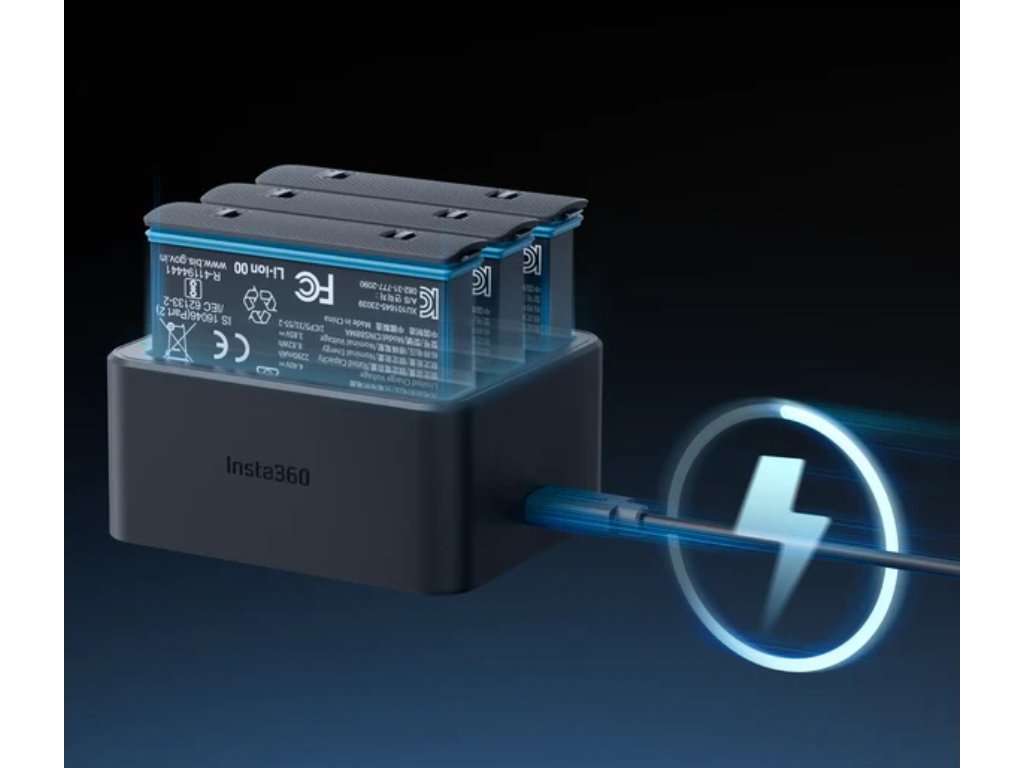 Nabíjecí hub pro tři baterie pro kameru Insta360 X4.